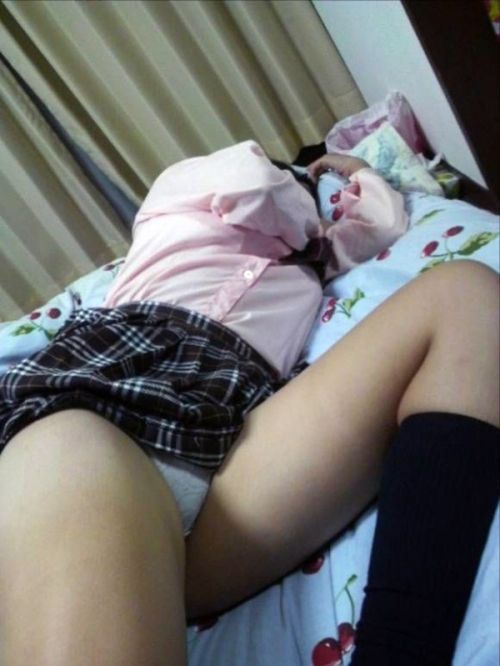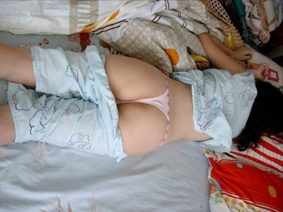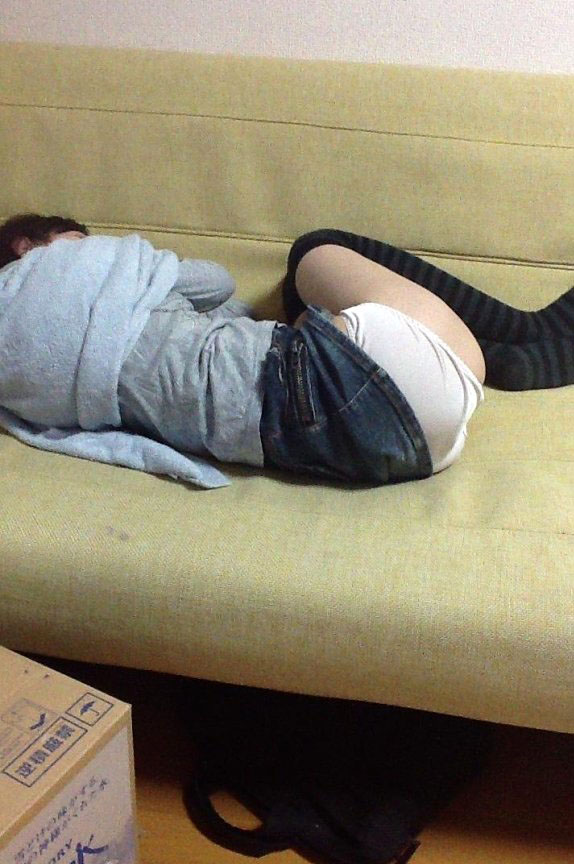 日常生活の一般人女性が寝ている姿にイタズ