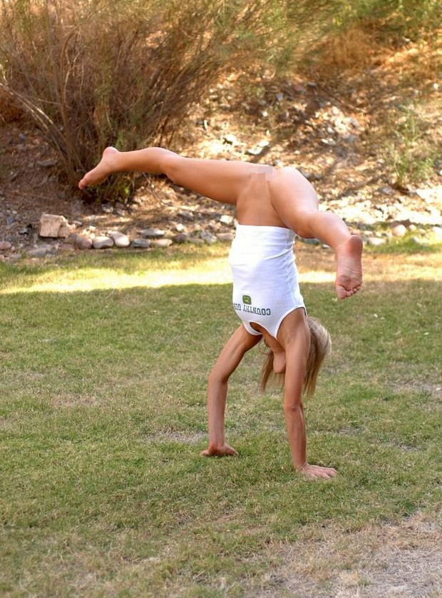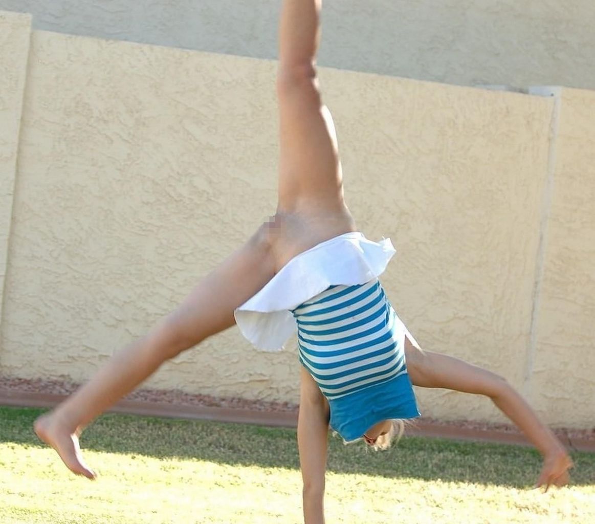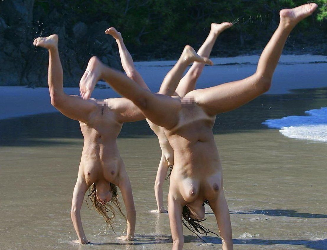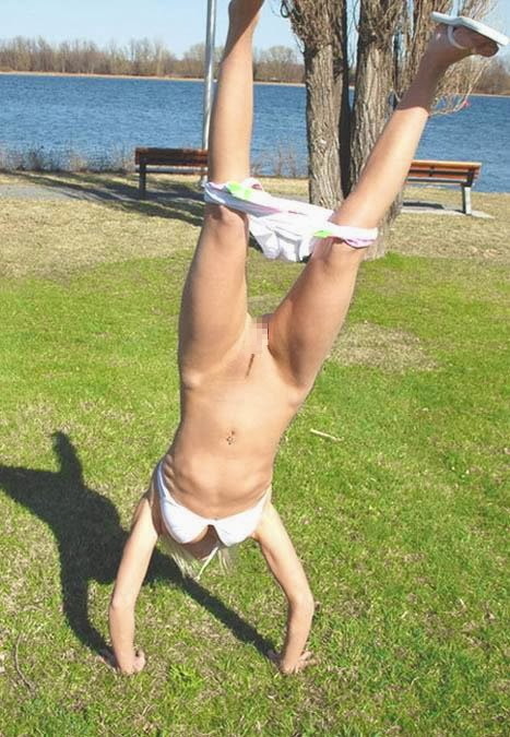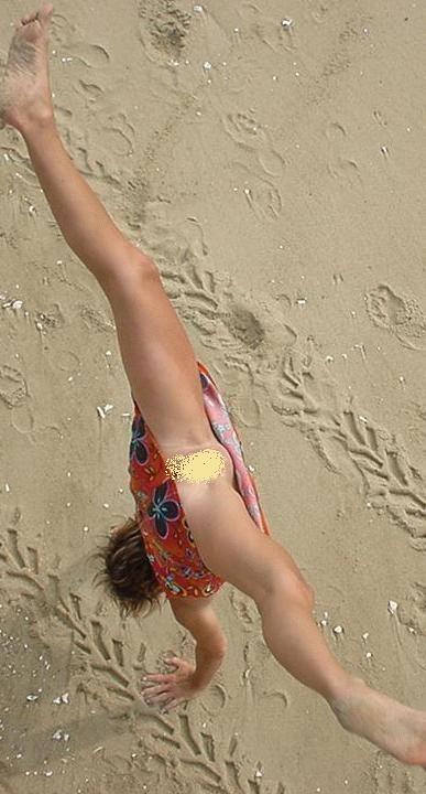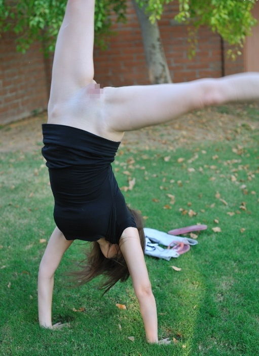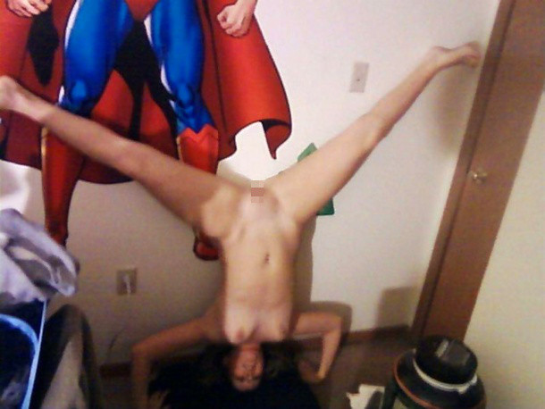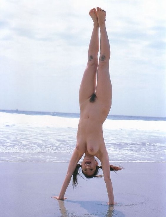 全裸の女体が逆立ちでオ○ンコパックリ満開